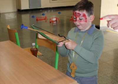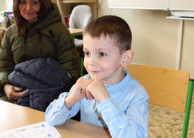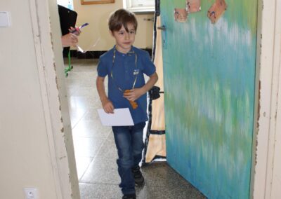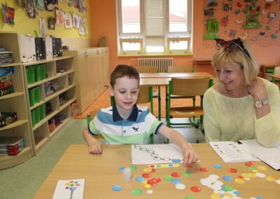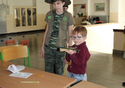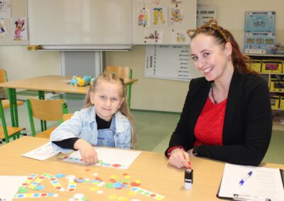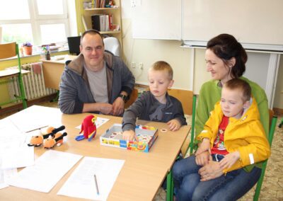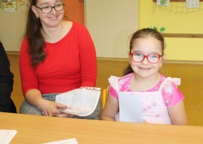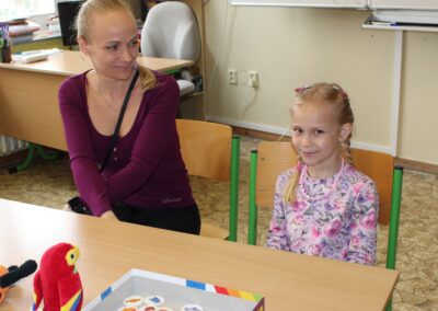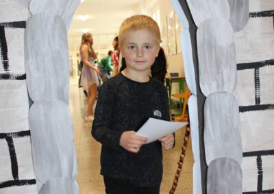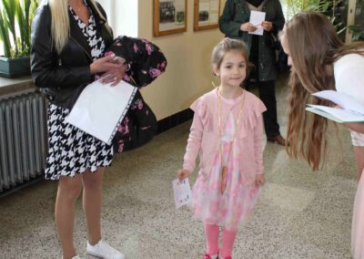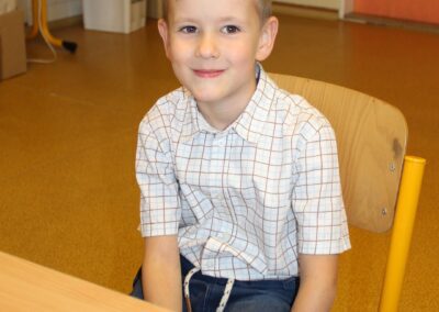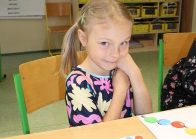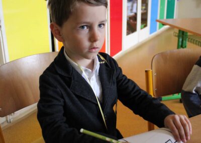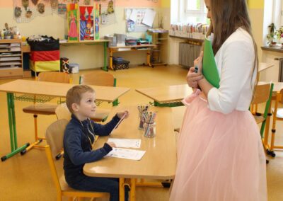 Je to jeden z nezapomenutelných dnů v životě rodiny. Malému předškolákovi končí bezstarostné hravé dětství a přicházejí léta školního vzdělávání. První den ve škole se nesl ve znamení pohádkového království. Vstup do něj obstarala brána s kouzelným zvonečkem. Pak už na budoucí prvňáčky čekalo několik úkolů, aby mohli klíčem odemknout tajemnou komnatu a osvobodit princeznu. Zatímco děti si povídaly s papouškem, určovaly tvary a barvy a malovaly postavičky, rodiče se věnovali úředním záležitostem. Kromě oficiální části se děti mohli seznámit se svými budoucími patrony z osmých tříd, kteří pro ně připravili několik zábavných stanovišť. První den ve škole je za námi, teď už máme před sebou jen těch zbývajících devět let. Těšíme se na dvě zářijové třídy nadšených prvňáků.